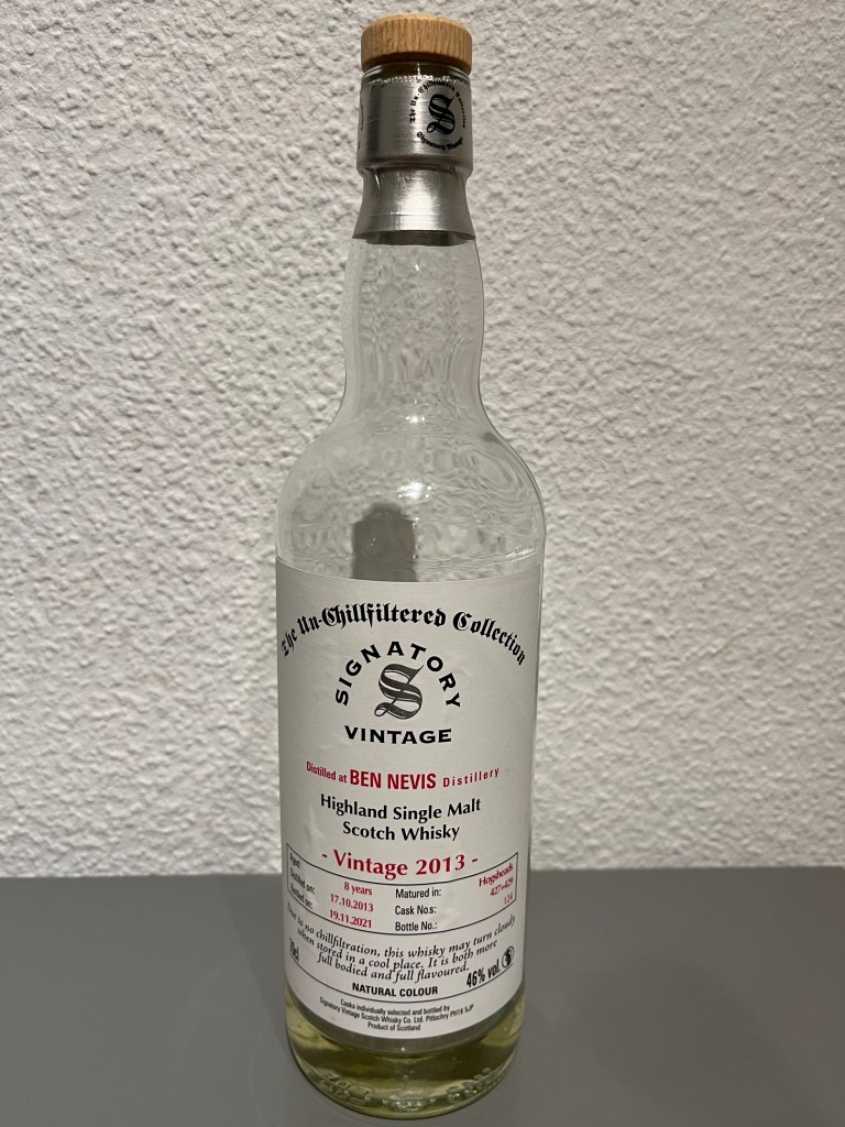 Ben Nevis is one of those character malts sought after by enthusiasts, at least the 20yo+ ones. I remember friends in my whisky club adoring Ben Nevis for it’s “cheesy” qualities. Some of us had the chance, under rather crazy circumstances at a whisky industry event, where our club committee had essentially been invited as “table fillers”, to simply help ourselves to some amazing 45yo Ben Nevis. But at the point that bottle was brought out we were too smashed to really know to appreciate it, having spent hours playing whisky-gambling games for “charity”. Story for another time perhaps…