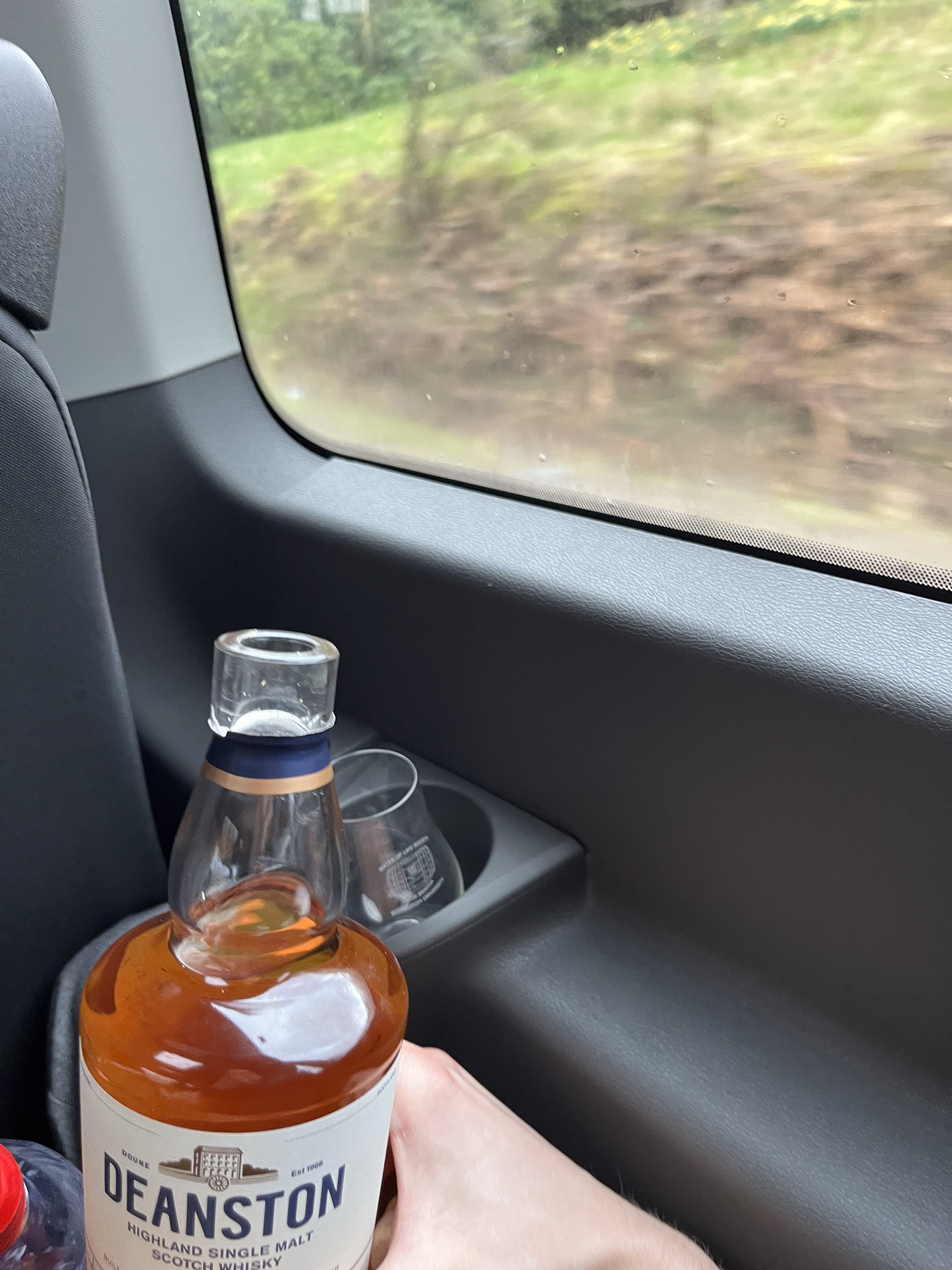 As per WOLS tradition, the whisky starts pouring as soon as the wheels start rolling. And whenever those wheels roll over a bridge, that’s the signal to have a sip. But no worries: everyone knows to drink slowly and not to mistreat the liquid gold in their nosing glasses by emptying one glass after the other. Myself, weak in spirit, did not pour my first “van dram” until after 10am – easing into it with lovely Deanston 12yo before the inevitable onslaught of peat .