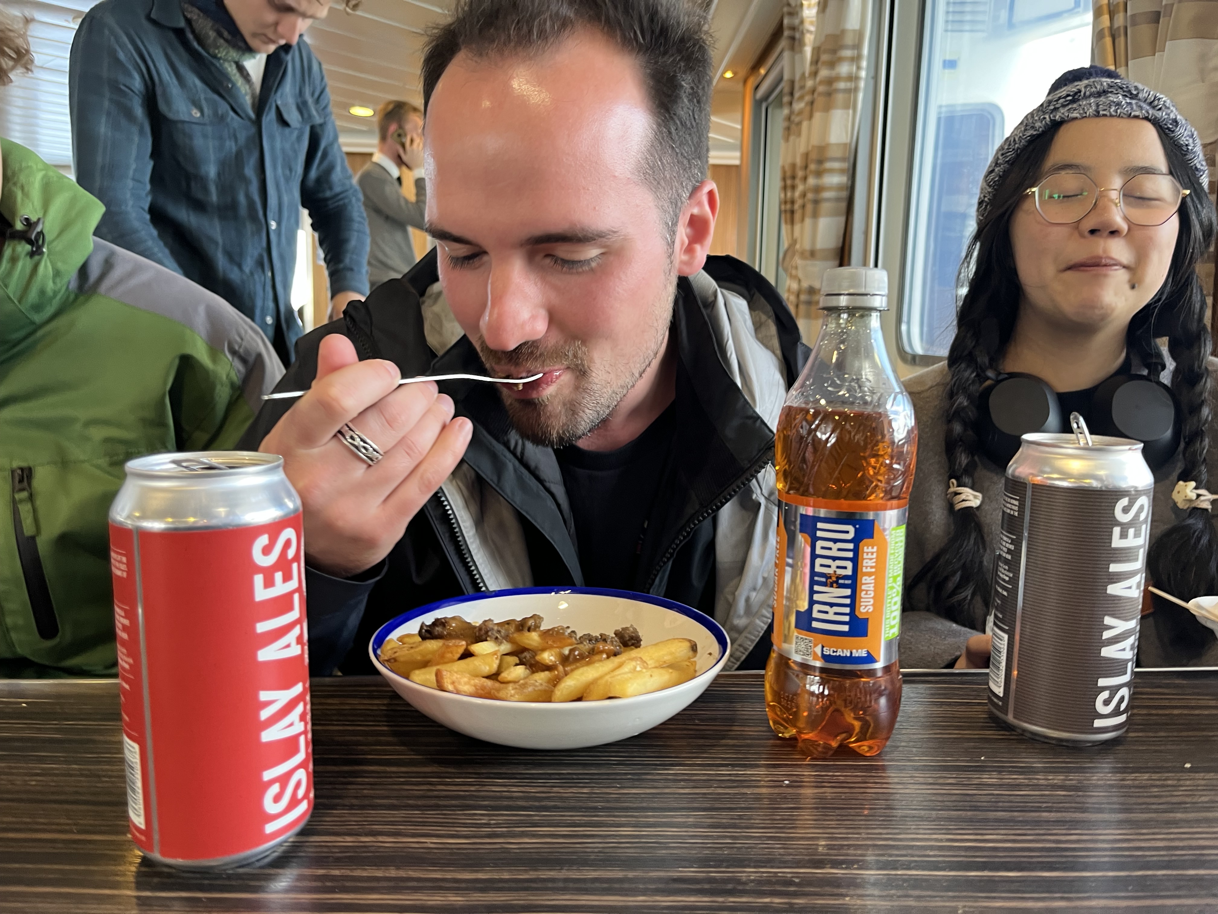 We had a couple of pit stops along the way, storming into gas stations like a brigade of revolutionaries. Our last stop before reaching the Kennacraig ferry terminal some 5 hours after we set out was Tarbert, where I took the opportunity to pop into local whisky store and gasp at the price tags on precious Springbanks and Octomores.