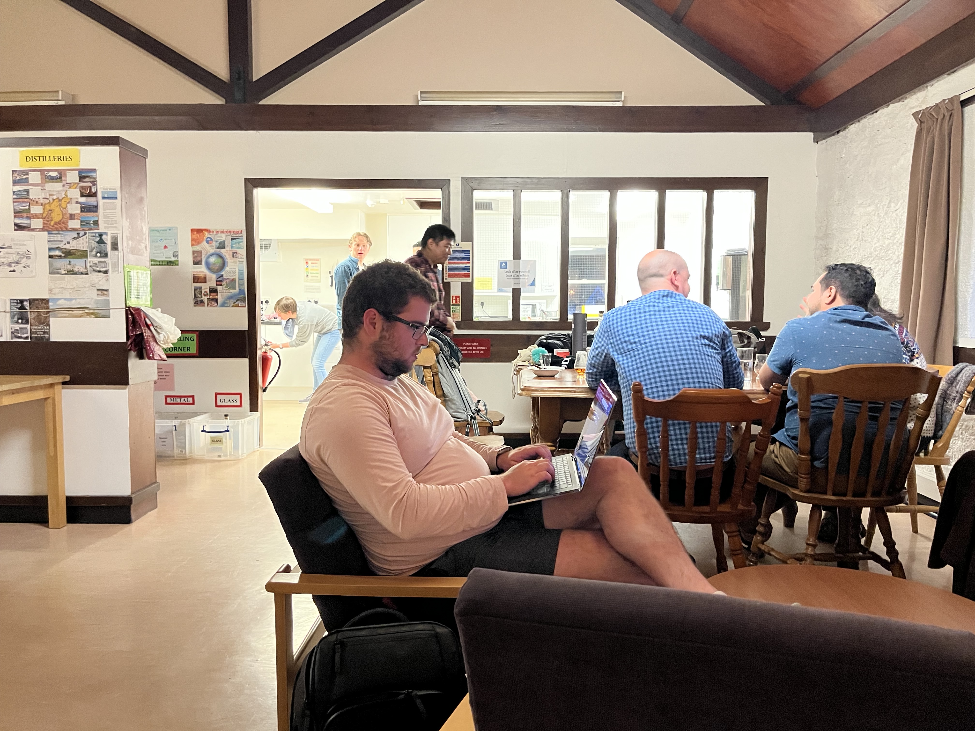 The evening continued in the common room, with discussions, cards against humanity, and drams poured from our pooled whisky resources. Those of us staying at the airbnb got to enjoy a rainy walk back along the coastal road in complete darkness.