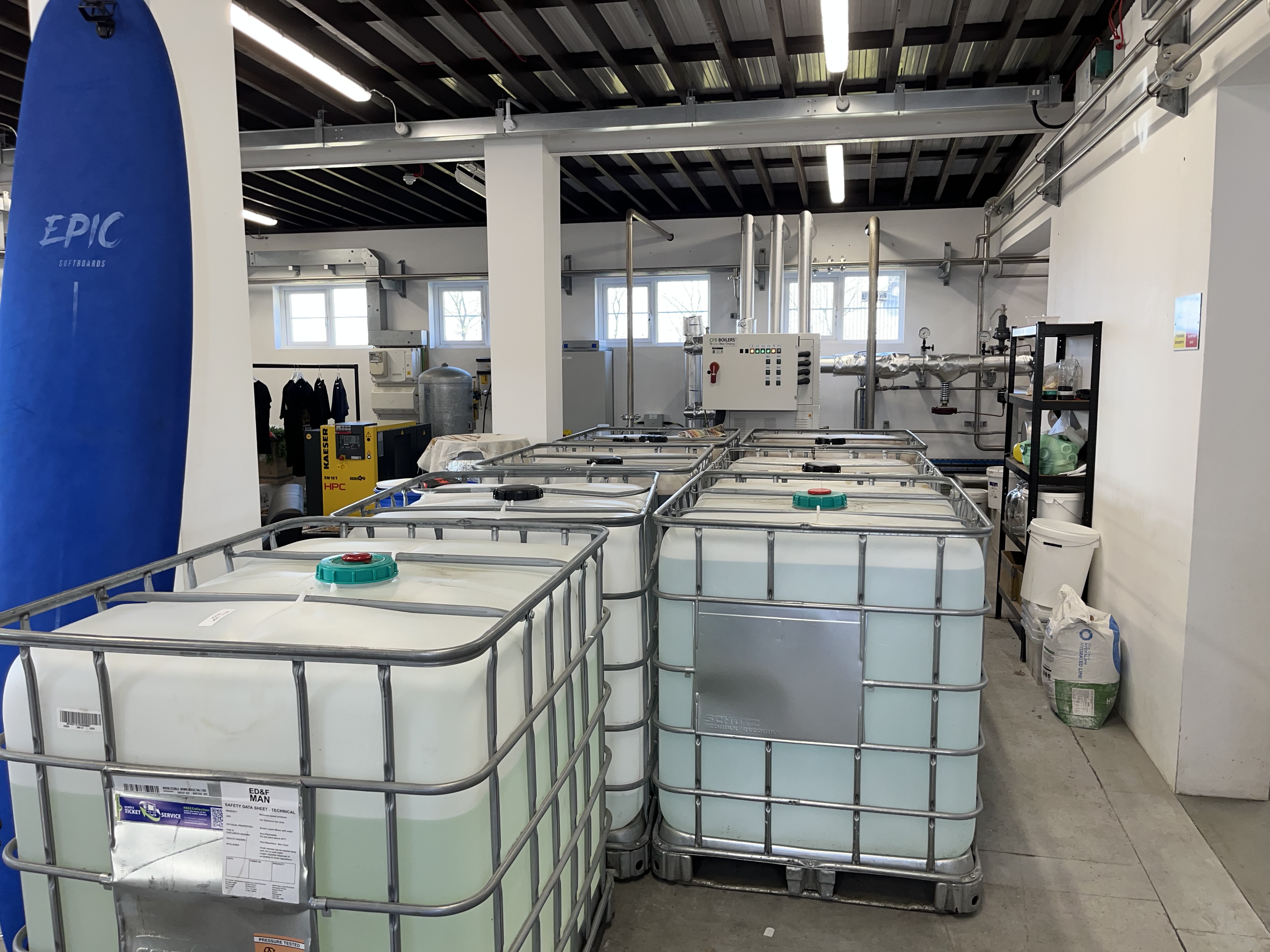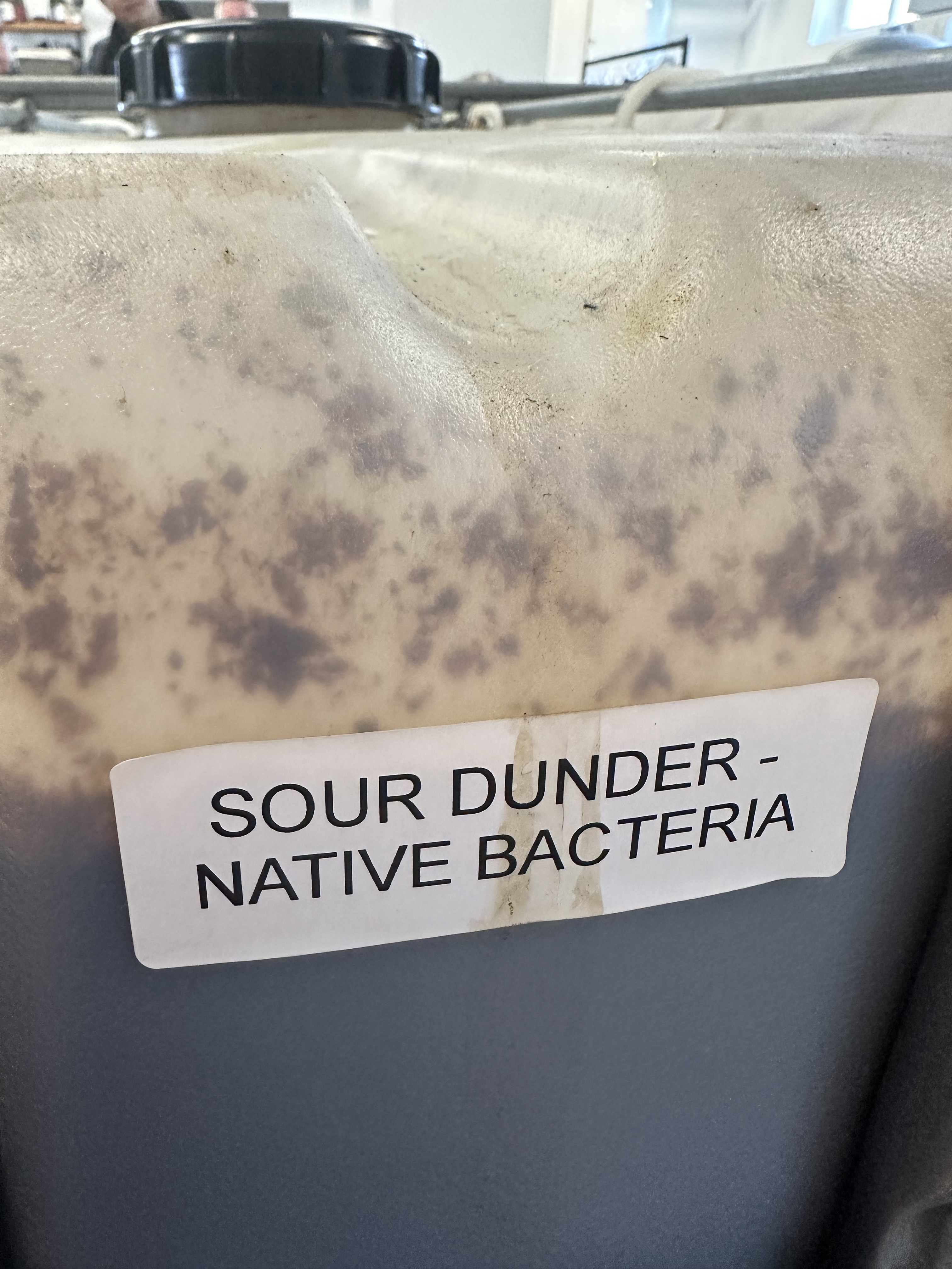 Rum is made from molasses, a kind of sticky, sweet residue left in the process of making refined sugar from sugar cane. (The molasses come in the big plastic tanks below). The molasses are fermented in steel tanks to produce a wash with around 7% alcohol. Naturally, we wanted to sample some. Quite awful, it was. Very bitter! In my notebook I scribbled down liquorice, chicken broth, soy sauce. I believe they were also experimenting with other microbes in the fermentation (but not the batch we tested). Apparently some strain of the Clostridium bacterium produces vomit-smelling butyric acid which after distillation forms an ester with a lovely pineapple smell.