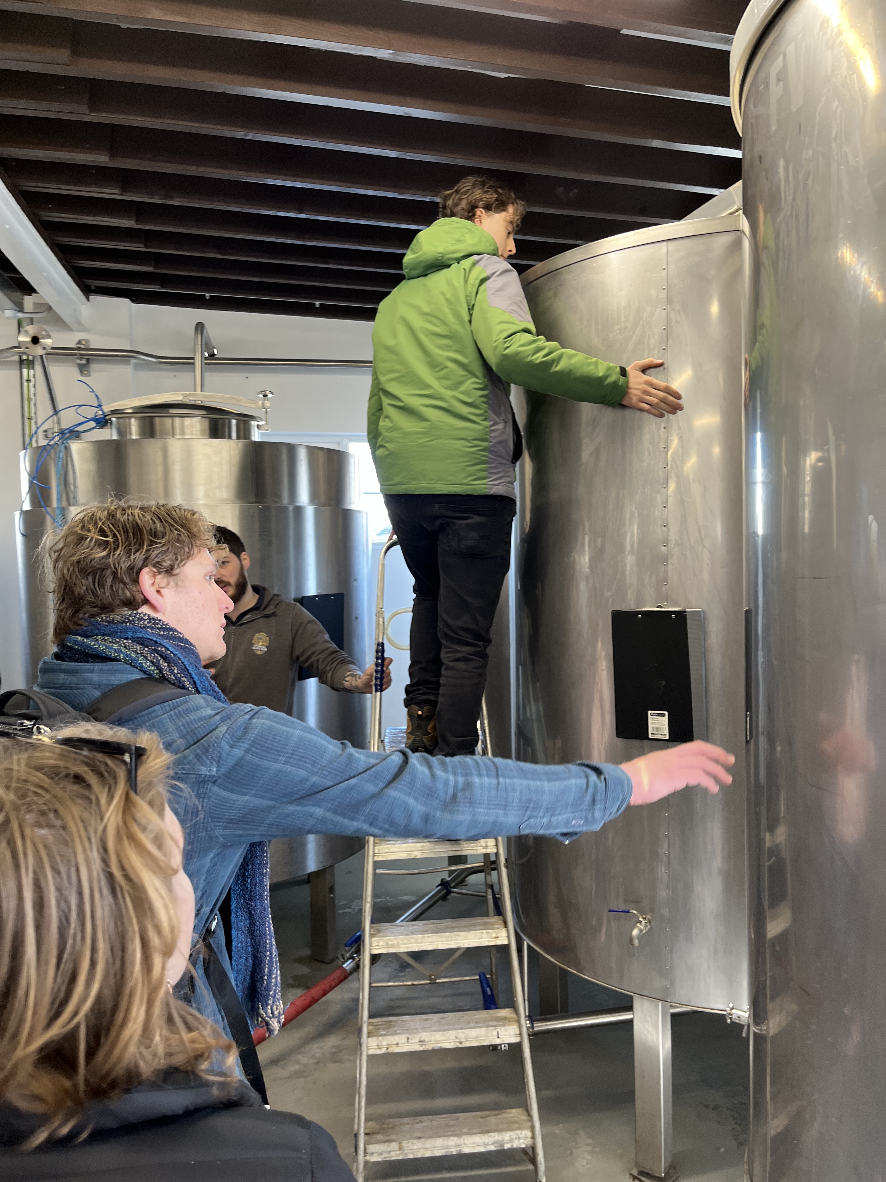 To make malt out of barley, it is first steeped in water and then spread out on a malting floor to begin the germination process. Workers turn the barley over by shovel at regular times, working shifts throughout the night. There is no temperature control in the building apart from opening closing the doors, so the temperature of the barley is maintained at the right level by either spreading it out or piling it up. I ate a few grains of barley, but realized I shouldn’t have when I saw people walking with shoes on it, not to mention the birds (no shoes on the birds, though).
