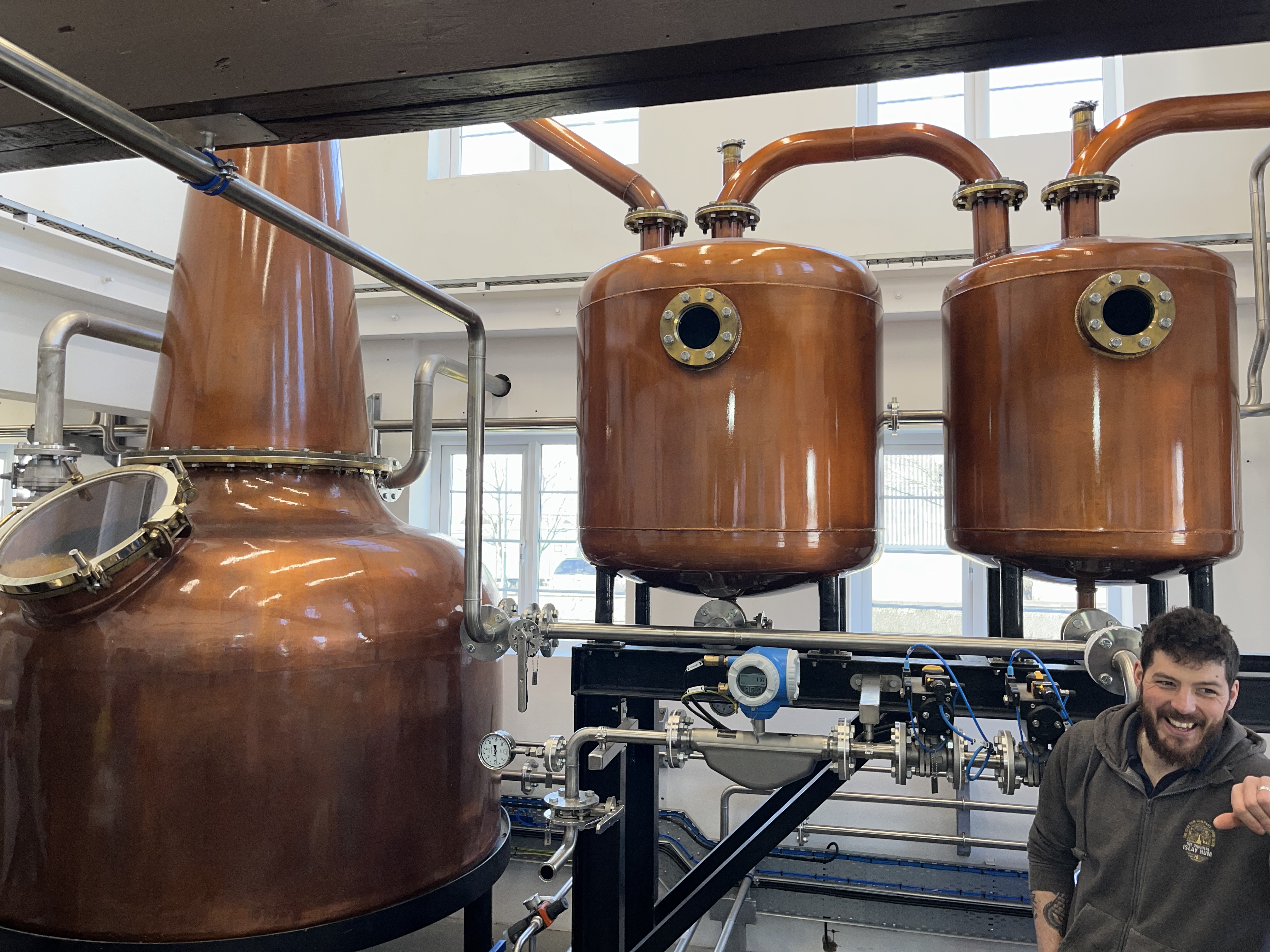 Our destino número uno was the old lemonade factory in Port Ellen. But since 2022, a very special lemonade is made there; one which makes you funny when you drink it, and in the mood to plunder some frigattes. Aye, it be rum. We received a very nice tour of the distillery by the friendly master distiller, Ben. While rum has yet to enchant me the way whisky has, I certainly found it interesting to learn about the similarities and differences in its making (and taste) as compared whisky.