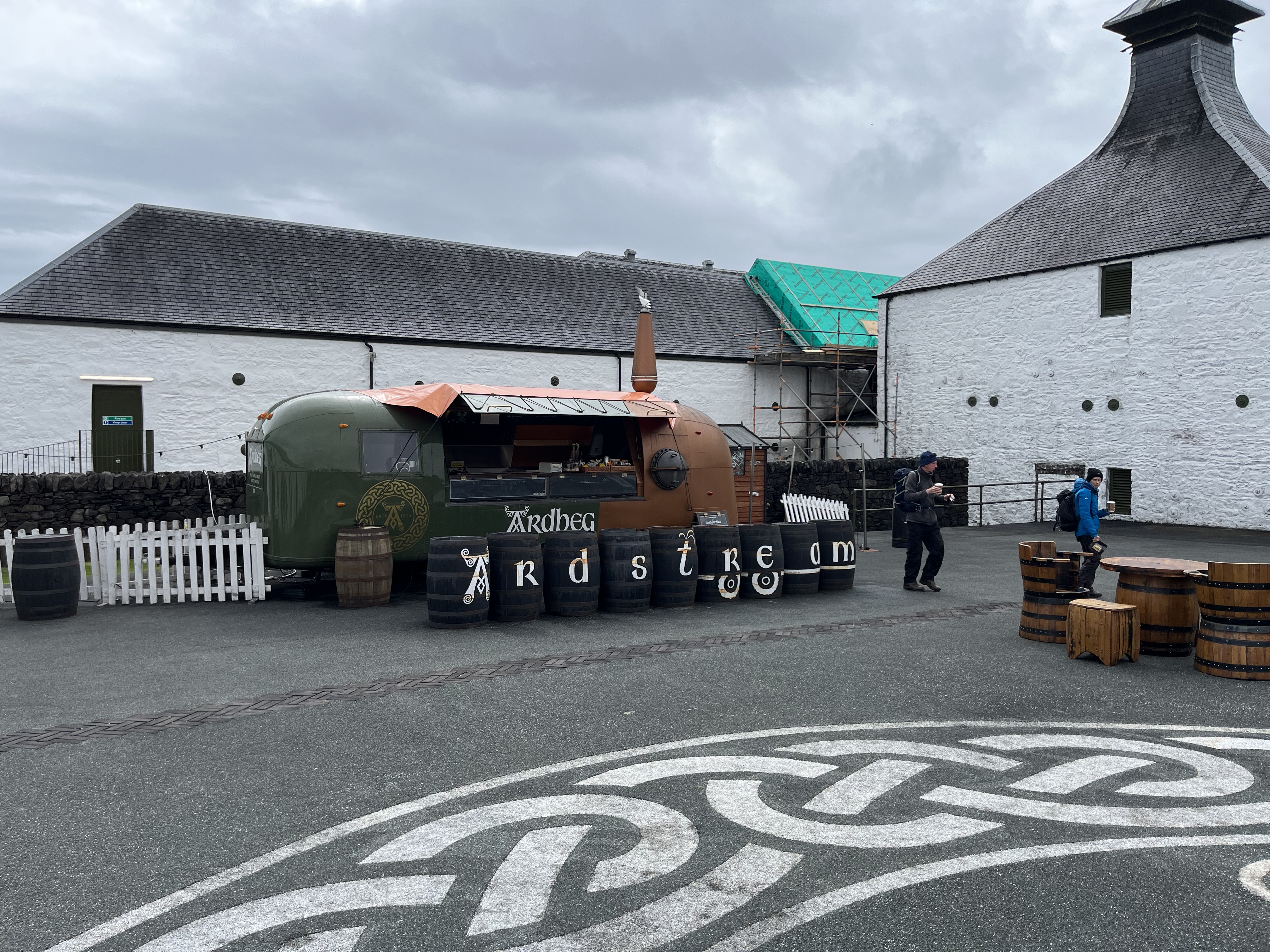 With rum and whisky in our bellies, lunch seemed like a good idea. Ardbeg has a restaurant, but (unsurprisingly) they could not fit all 18 of us, showing up unannounced on this busy day. Luckily, Ardbeg also has a food truck that was up and running in the patio, so we grabbed some some deli sandwiches, chowder, and scones. The committee bought a bottle of Ardbeg’s new release ‘BizarreBQ’ to warm us up with.