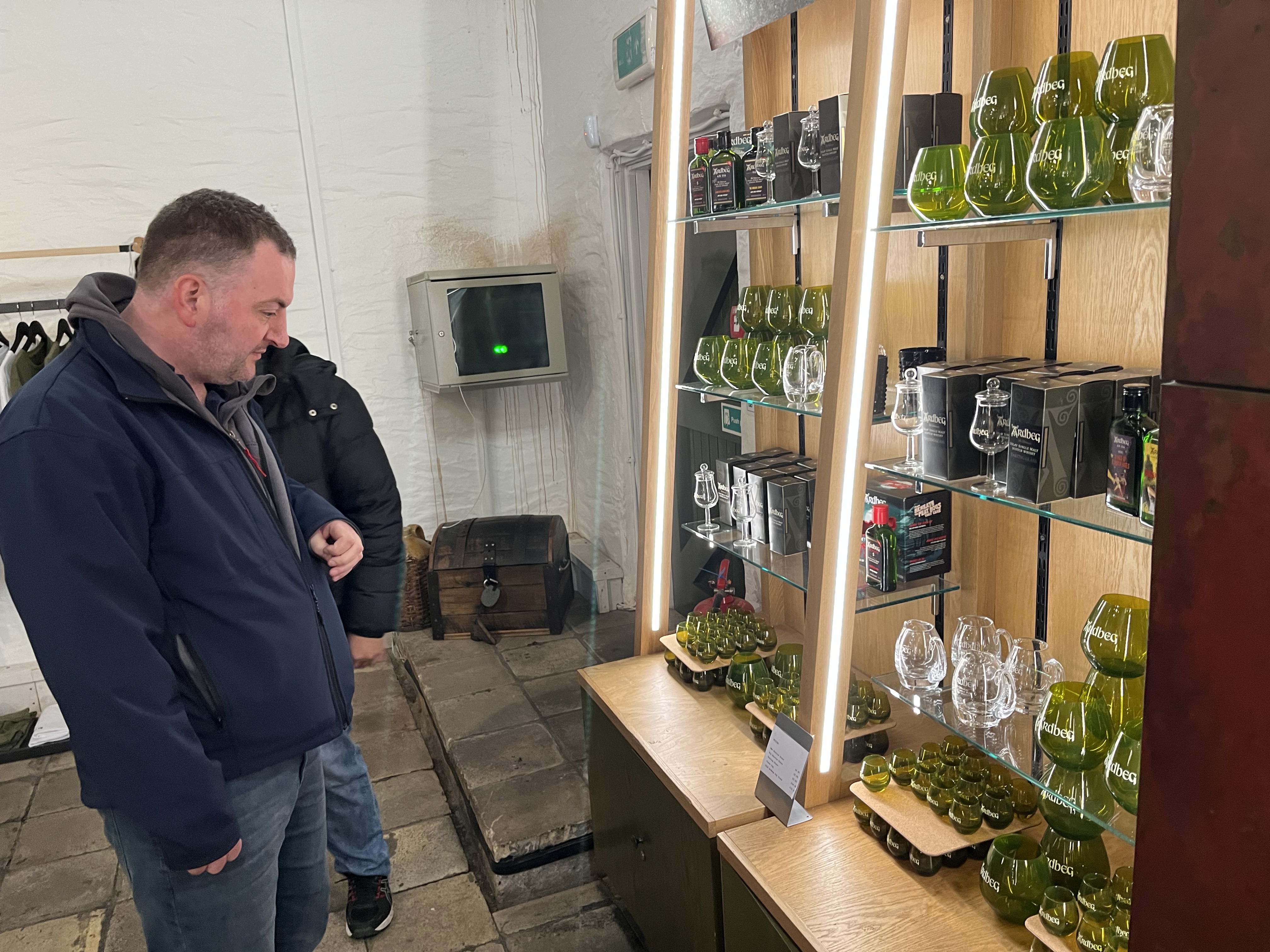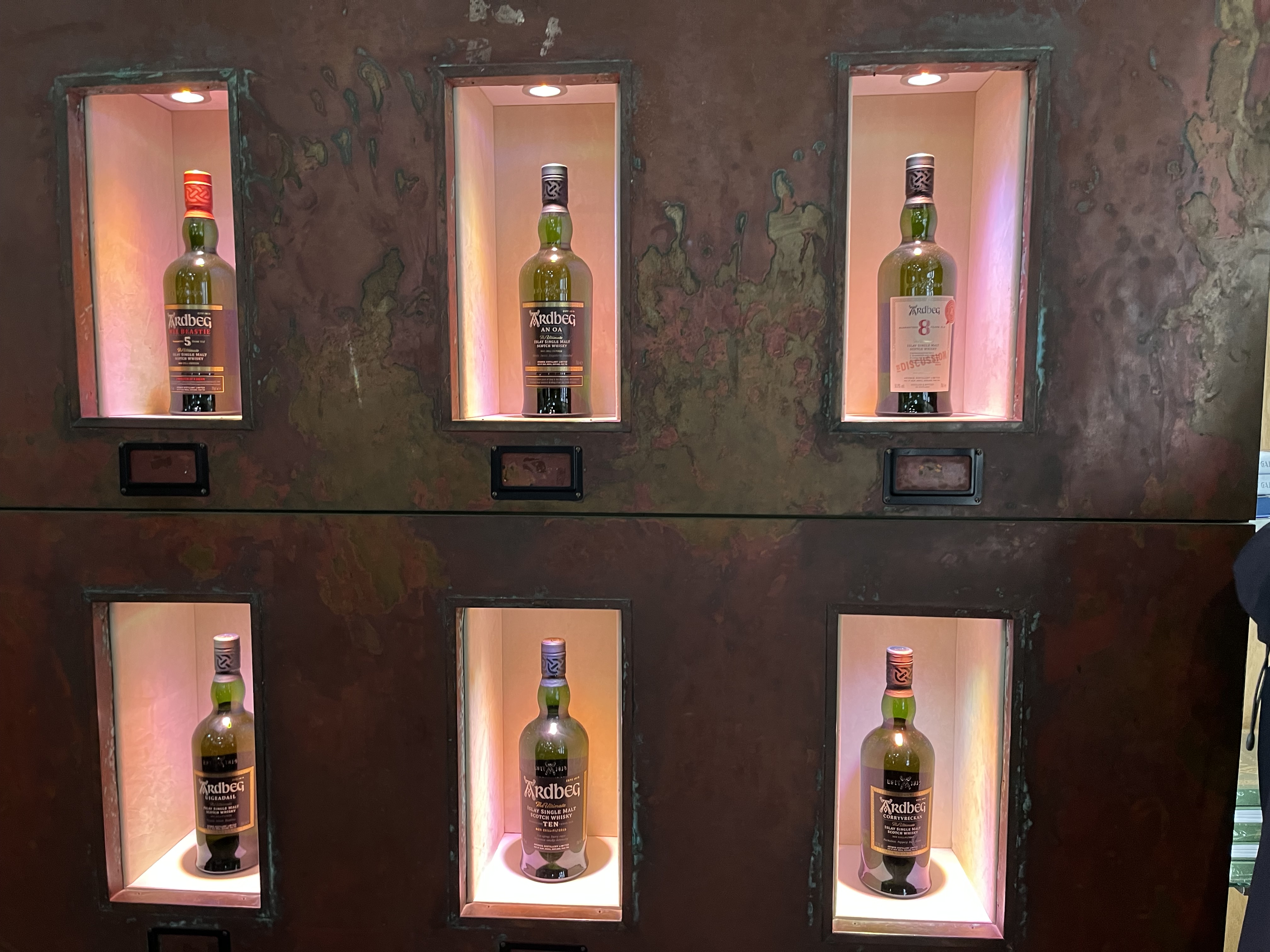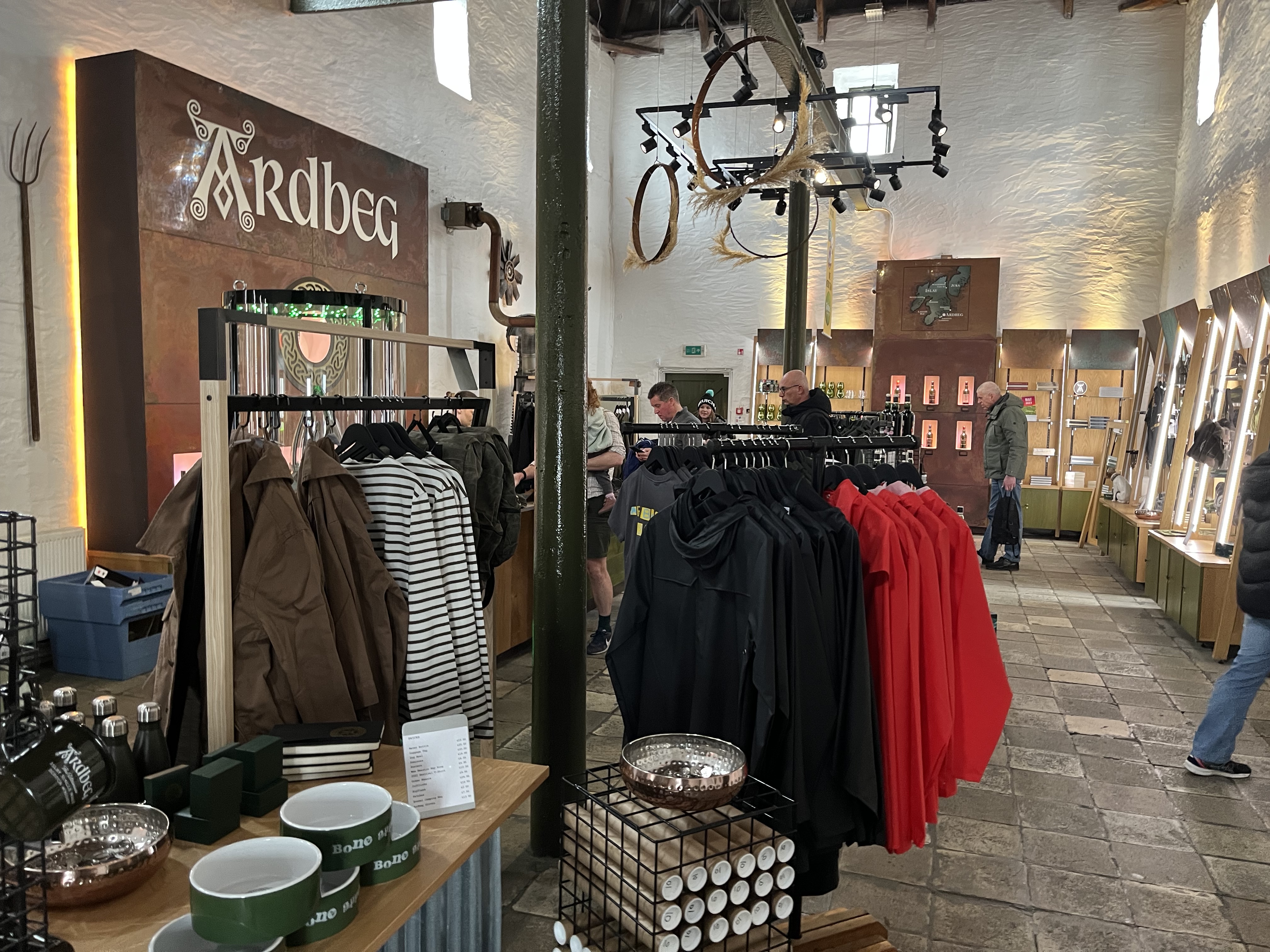 No tour or tasting booked, but as always we examined the shop, where some of Ardbeg’s marketing stunts, like a spirit sample ‘matured in space’ were also on display. Ardbeg has a devoted following, as much due to characterful branding, as to characterful whisky, I’d say. But recently they really seem to have gone down a spiral of excessive marketing, deteriorating quality, and inflated prices, which has not gone unnoticed.