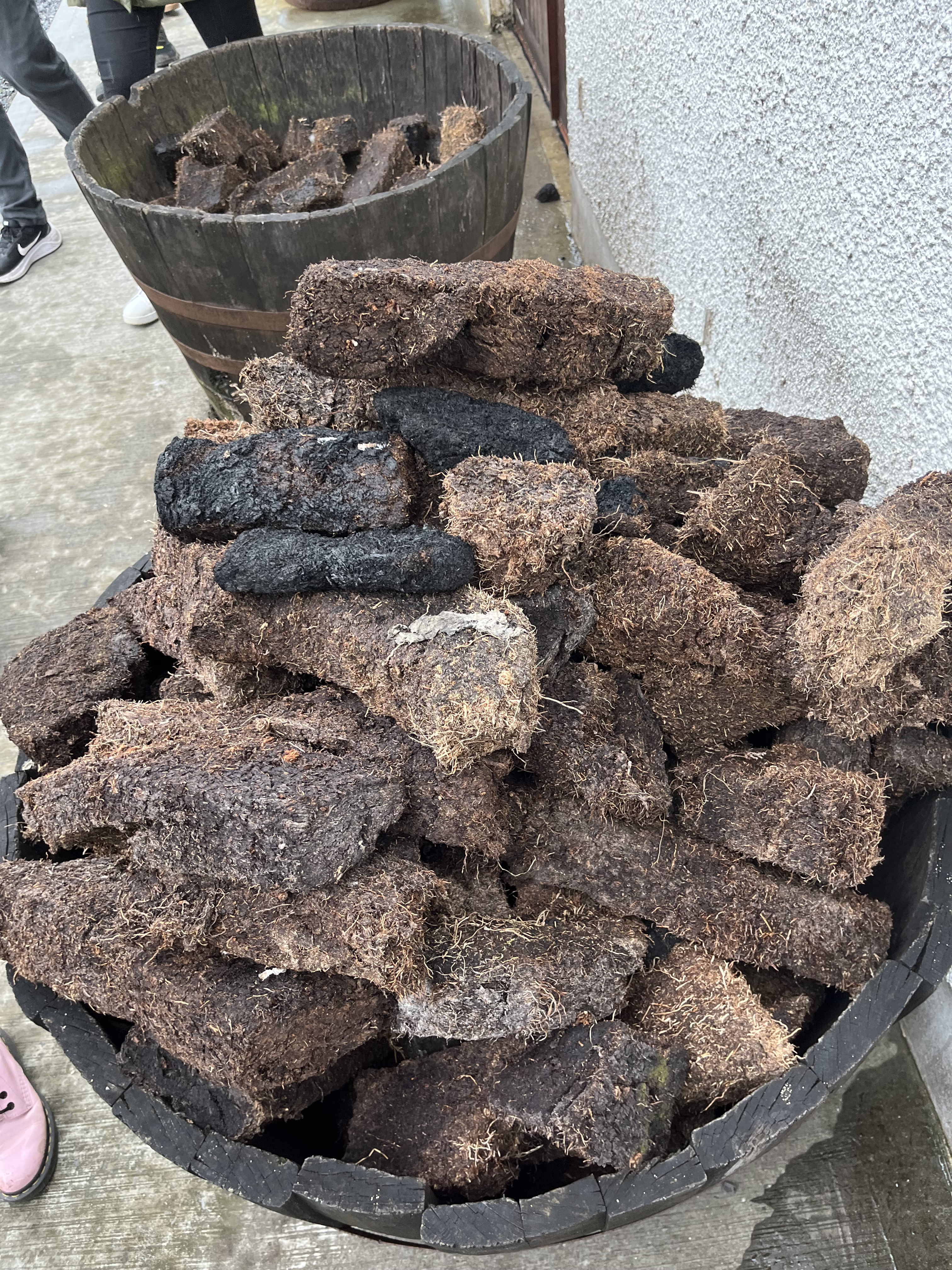 The second step is to halt the germination by drying the barley out in a big kiln, thus ending up with malt. Traditionally, these kilns were fired with peat, and still are in the production of peated malt that makes peaty whisky. The tour guide’s favourite topic to talk about was peat, and naturally we indulged her. Apparently peat, which is essentially fossilized plant matter, is becoming a sensitive issue due to the erosion of peat banks, the finite amount of it, and the green house gasses released in its bruning. Some number of decades from now alternatives may have to be sought. For now, Kilchoman has the right to carve peat from a given plot of Islay land. Apparently they have a guy who does it all every season and he has the superpower of not minding the midges. (I mind midges. A lot.) I snuck a bit of Islay peat into my pocket as a souvenir.