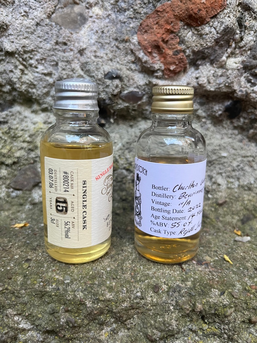 On the menu: two samples from the Benrinnes distillery in Speyside. One from UK independent bottler Chorlton, that I bought from Hop/Scotch, the other sample from my Single Malts of Scotland advent calendar 2022.