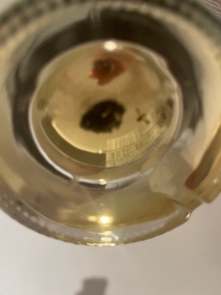 A fruit fly has surrendered its spirit to this spirit. Some kind of precipitate has also accumulated at the bottle. I really don’t know if thisis related to the fruit fly or not. I’ve seen worse gunk in some unfiltered bottles, but it is suspiciously dark. Well, whatever it is I’m sure the alcohol has sterilized it well.