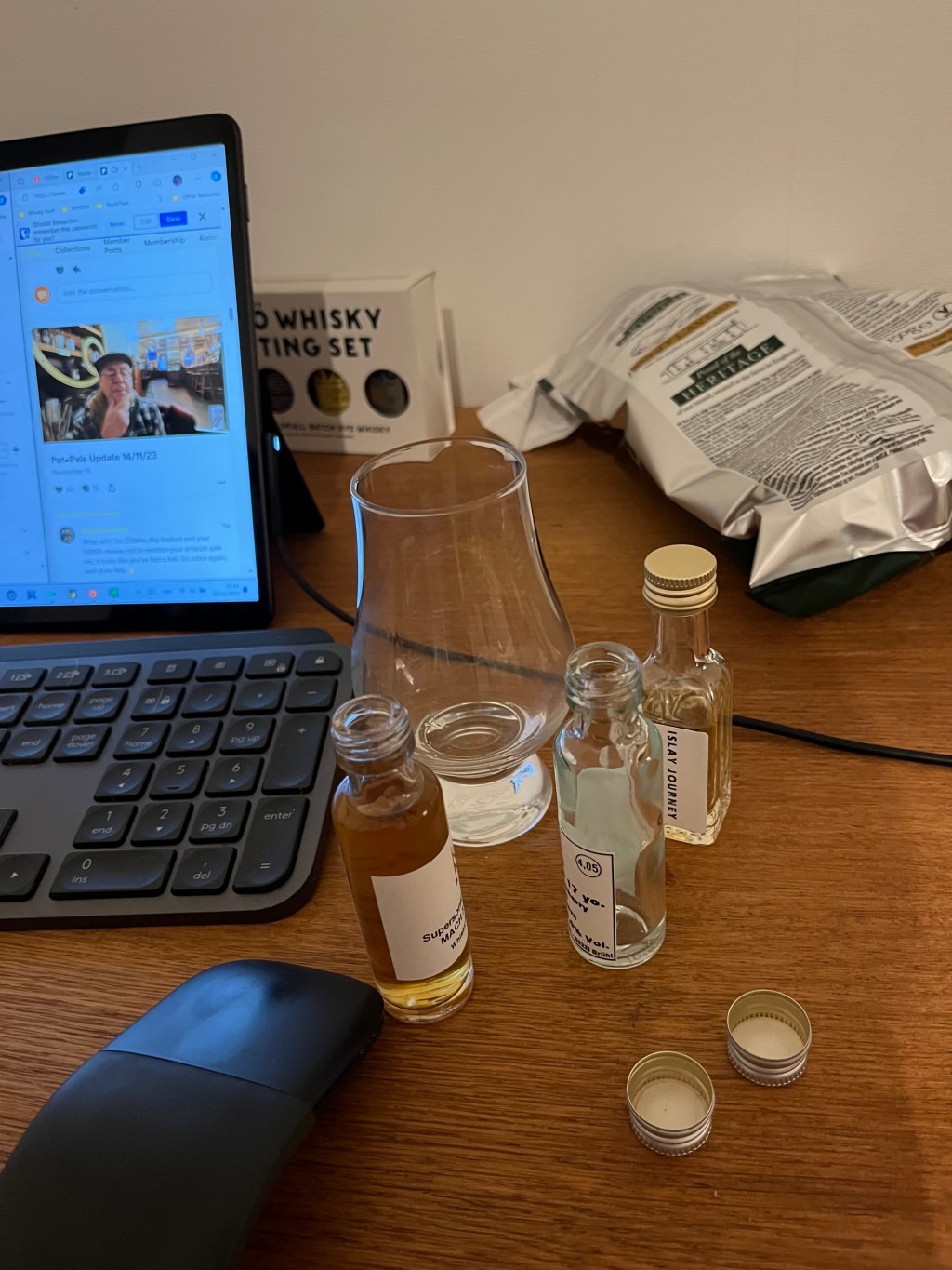 Here I am an Paris, in a somewhat decayed apartment, and though I should perhaps be sipping wine in a bistro instead, I couldn’t help myself from bringing along a few samples of whisky to savour. Yes, I brought a Glencairn glass too!
