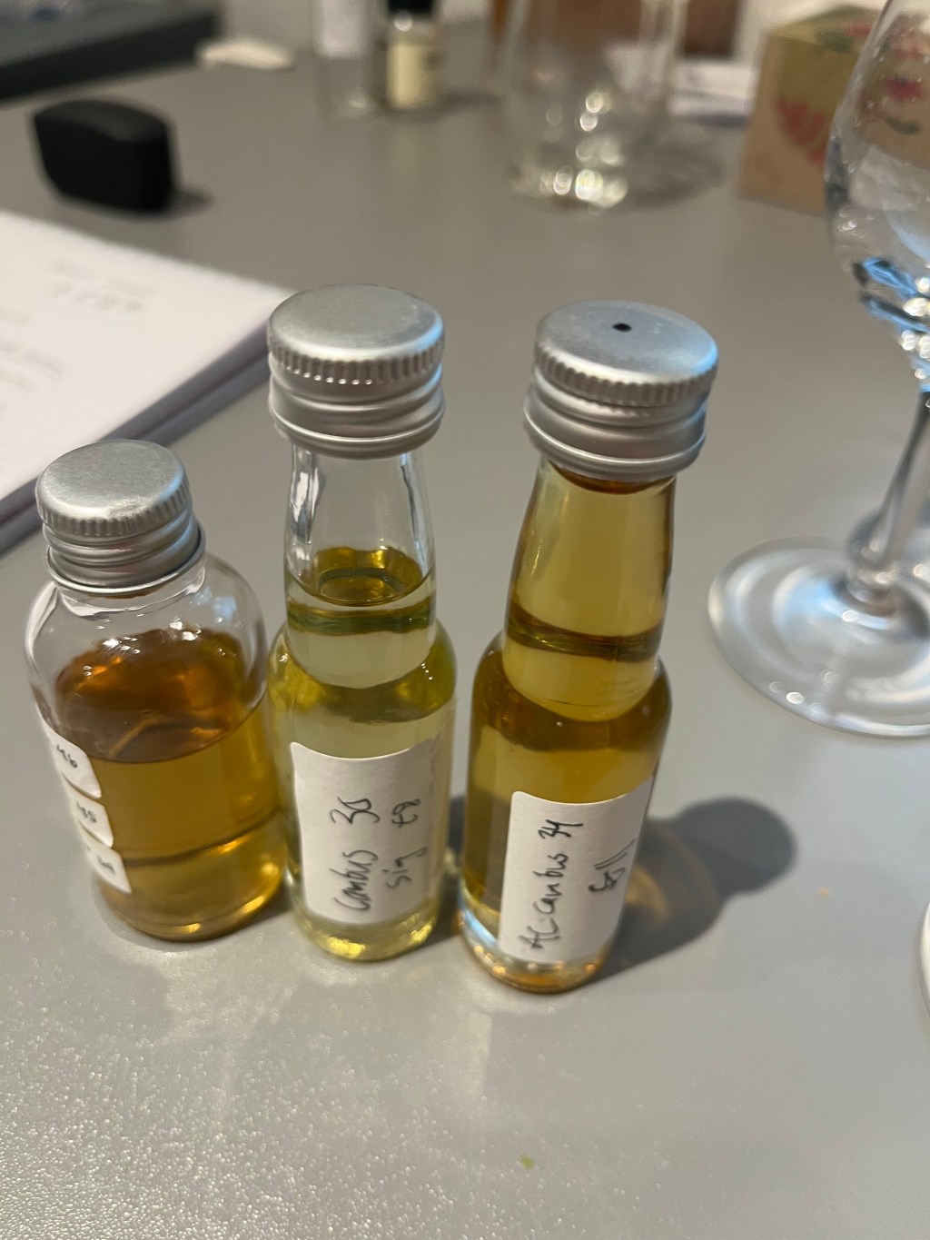 I got both today’s samples from Bad Homburg whisky fair 2023. It seems I didn’t take a photo of the first bottle, and from the info I jotted down on the sample bottle label I’ve only been able to narrow it down to one of three lightly-coloured 30yo Cambuses from Signatory Vintage. Let’s have these bad boys, and if you stick around ’till the end, there’s a little surprise!
